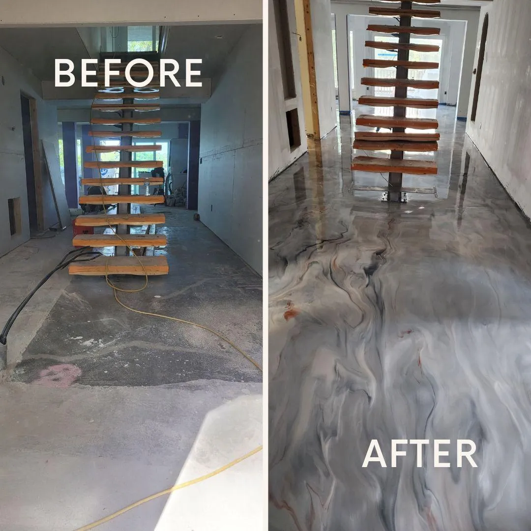 Add a Touch of Luxury with Metallic Epoxy Floors. Bring a modern, sophisticated look to your home or garage with our metallic epoxy flooring. Known for their durability and stunning visual effects, these floors are perfect for creating a standout space that combines functionality with high-end style. Suitable for both residential garages and interior rooms, our metallic floors are easy to maintain and built to last.