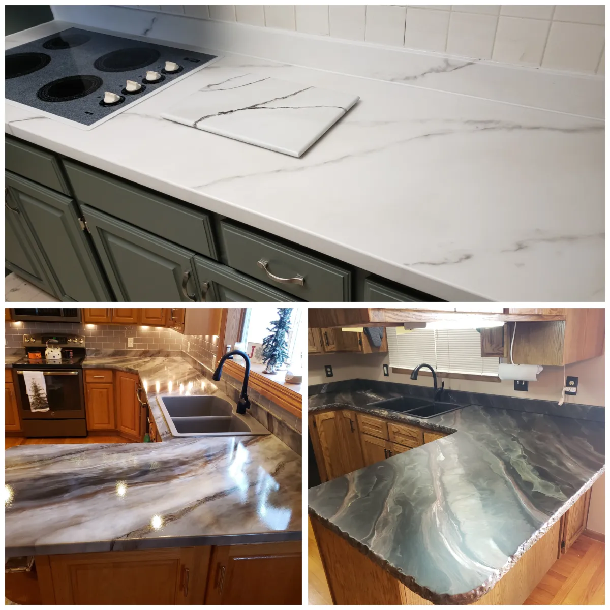 Cost-Effective: Compared to high end granite or marble, resurfacing and/or epoxy countertops can offer the luxurious look of high-end materials without the hefty price tag, providing a budget-friendly option for kitchen renovations.